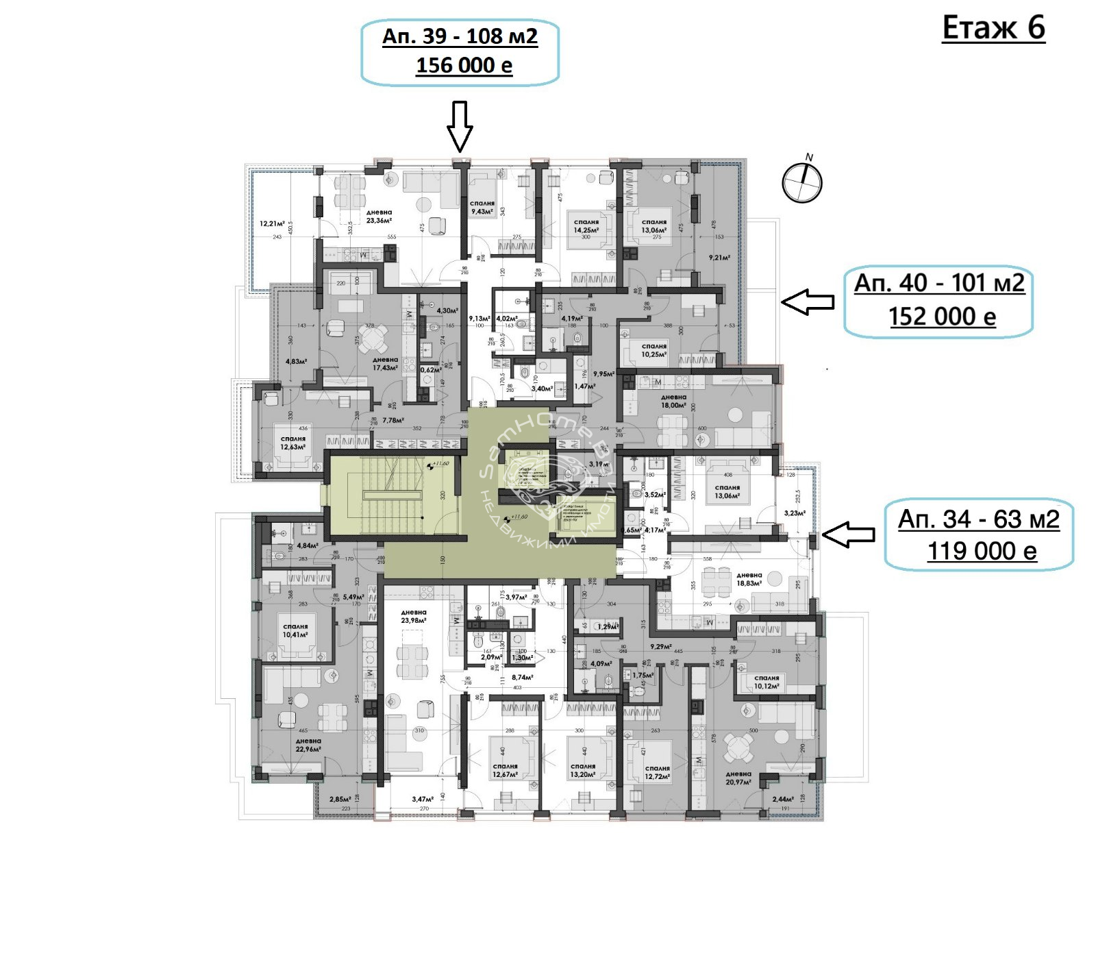 Етаж 6ап.34 - Двустаен - 63 кв.м. - 119 000 Евро