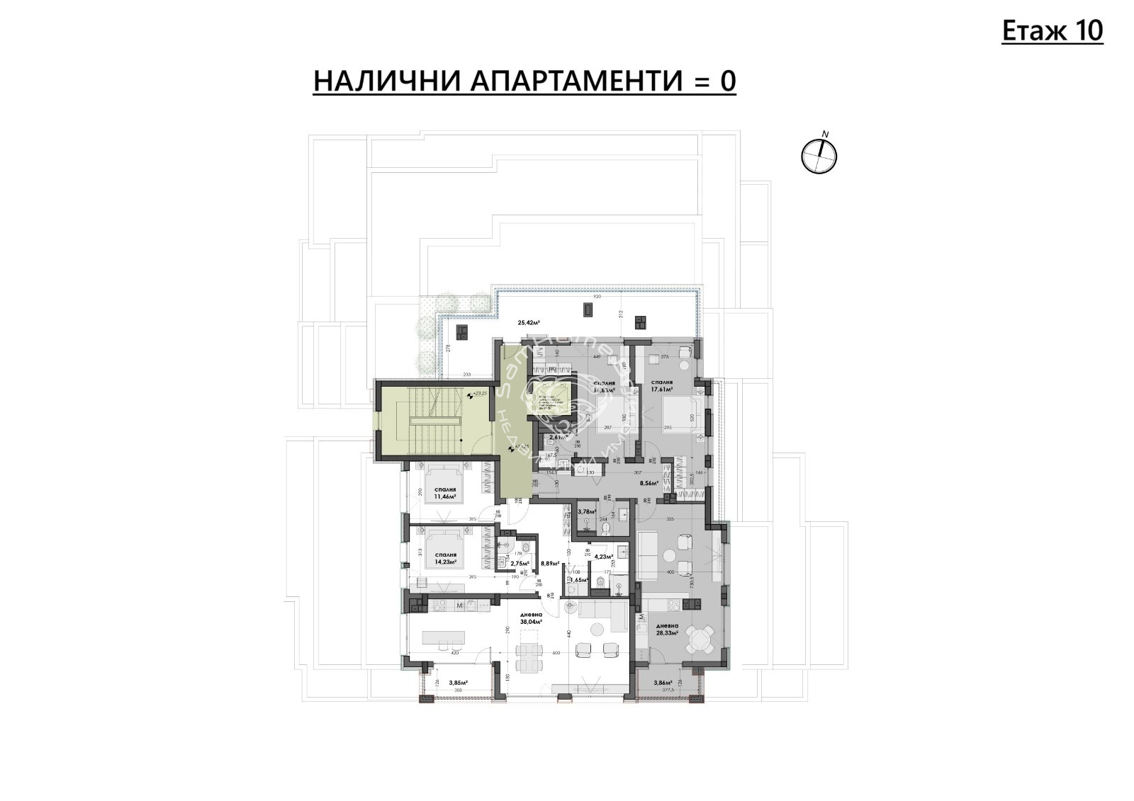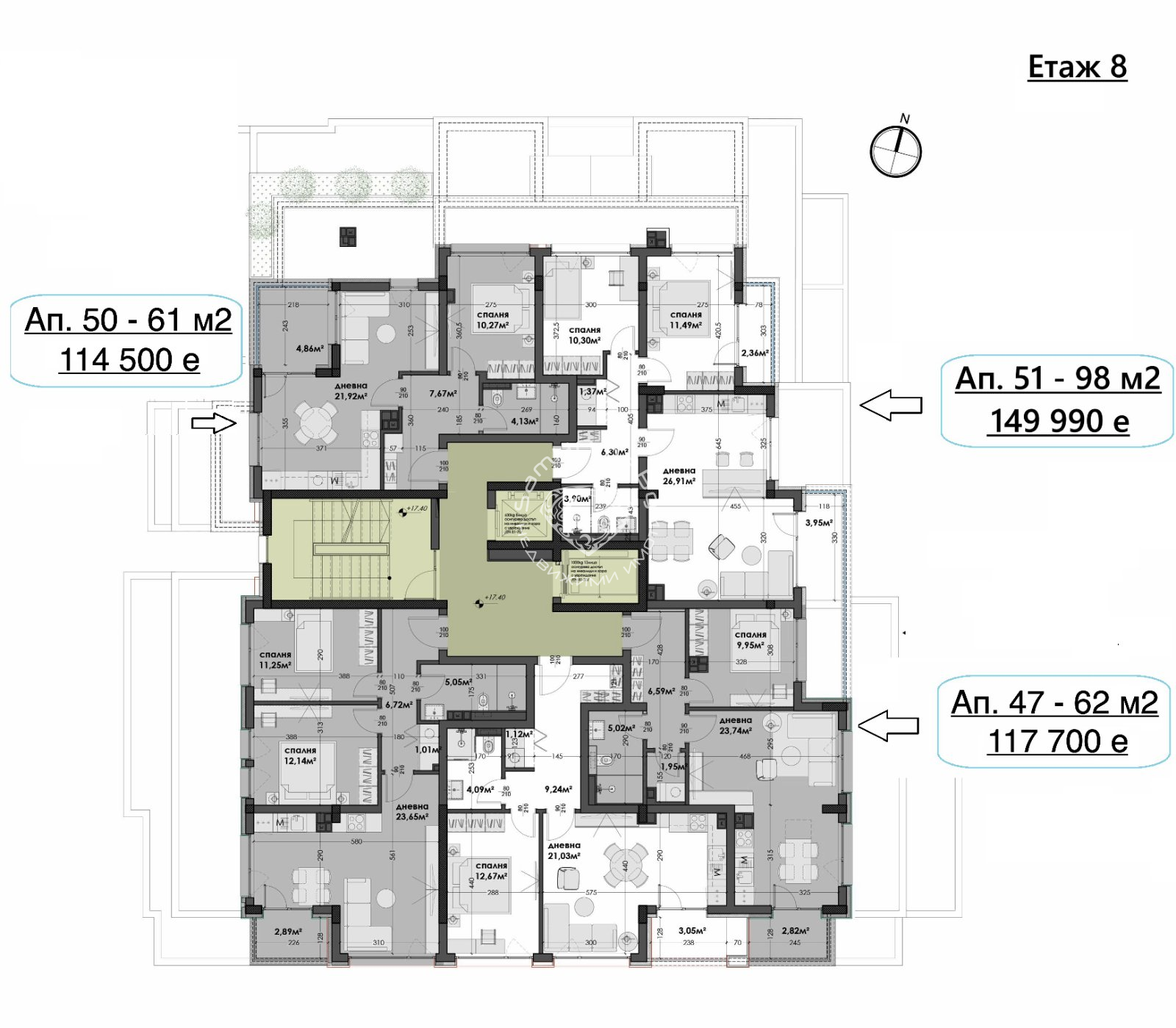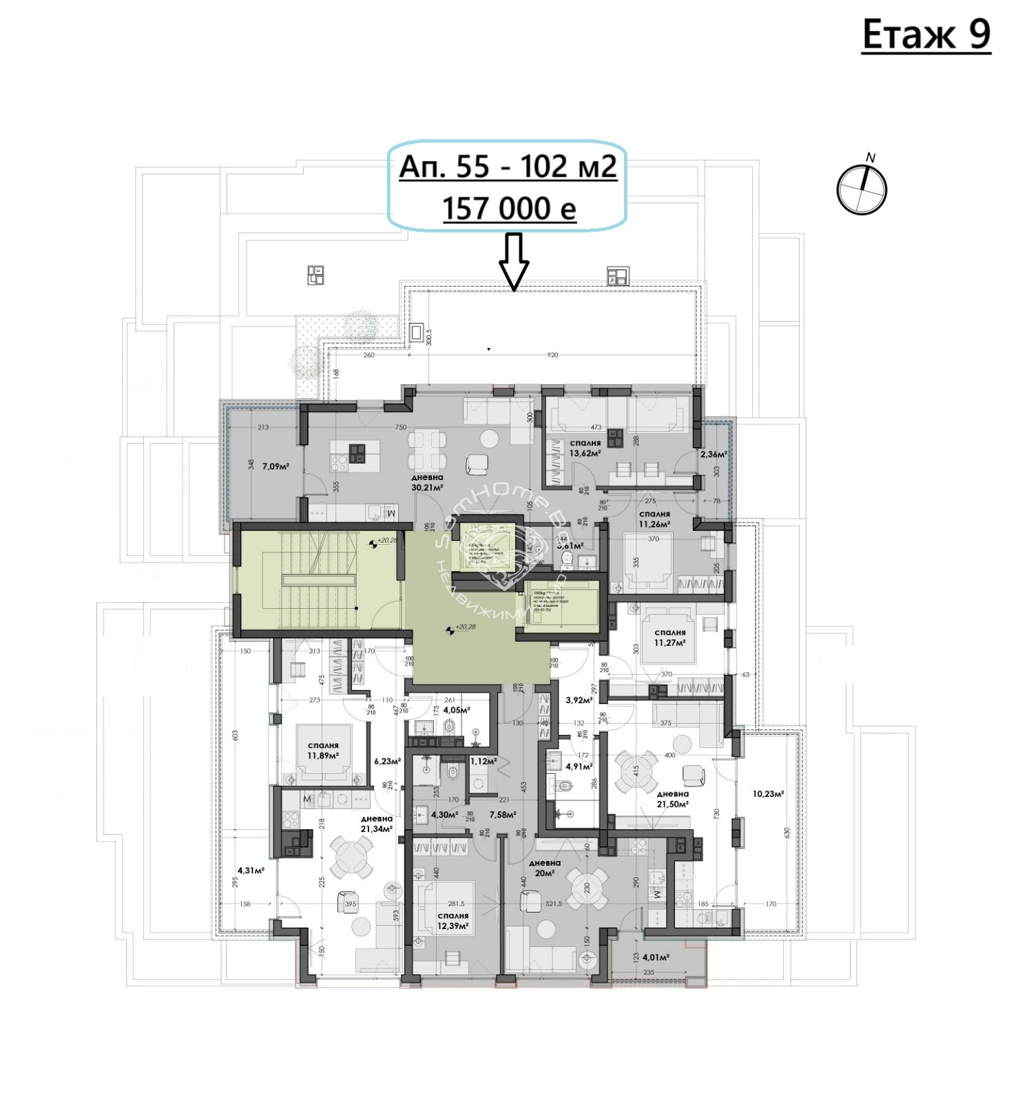 Етаж 9 ап. 55 - Тристаен - 102 кв.м- 157 000 Евро