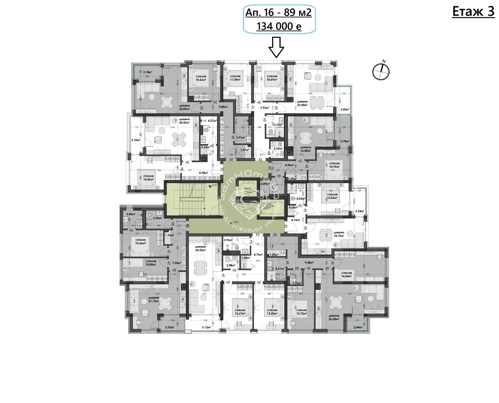 Етаж 3ап.16- Тристаен - 89 кв.м.- 145 000 Евро