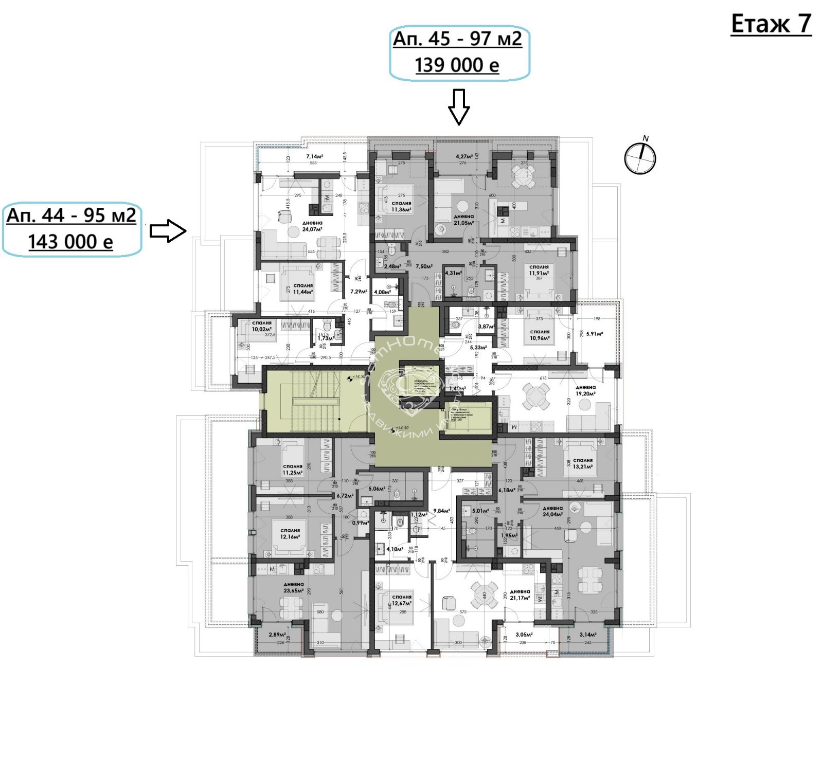 Етаж 7ап.44 - Тристаен- 95 кв.м- 149 000 Евро