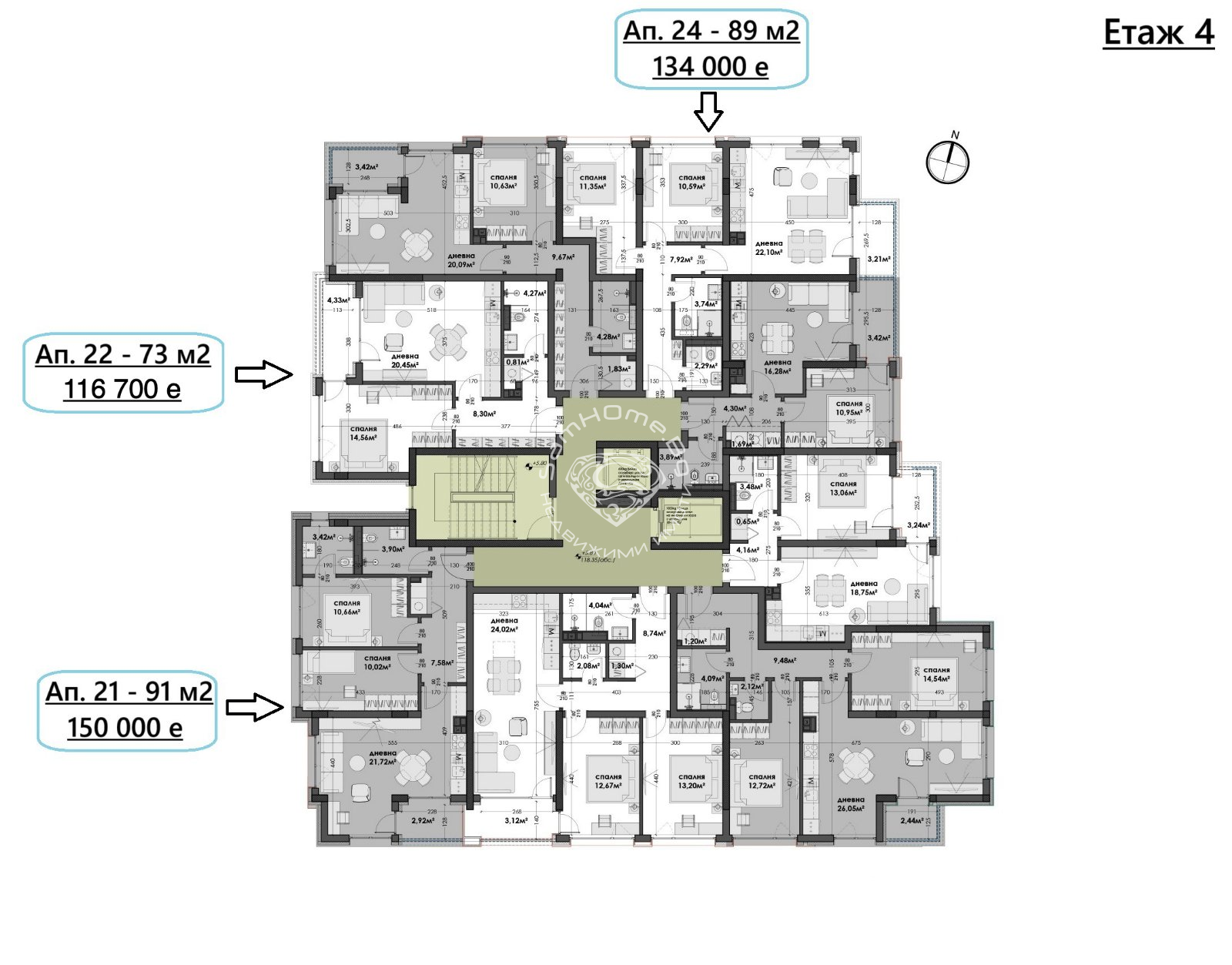 Етаж 4ап.21 - Тристаен - 91 кв.м -
