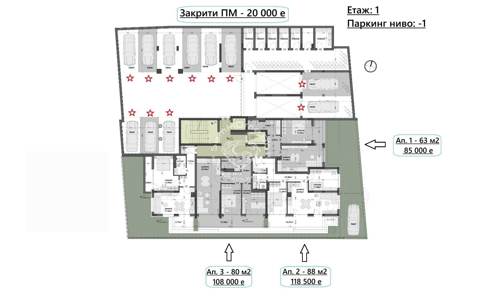 Опция за покупка на паркоместа в сградата на цени от 21 000 евро!!!