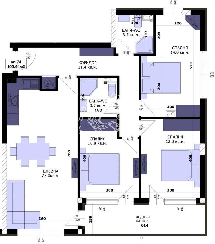 ап. А-74 - 179000 евро / 119.44кв.м. /4-стаен Юг-Изток